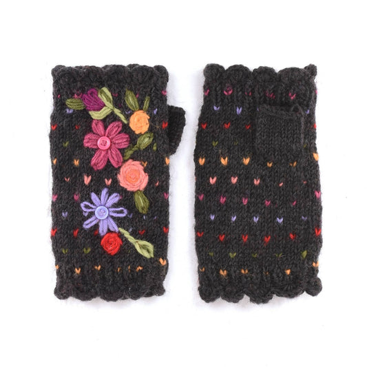 Anaya Handwarmers – Wool Knit with Floral Embroidery