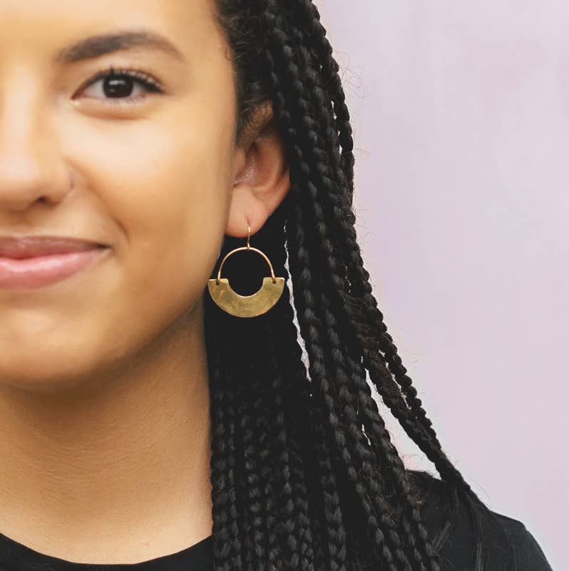 New hoops in the shop! Made of hammered brass with an anti-tarnish coating and 18K gold plated earwires. They are lead and nickel free and 1" x 1.5".